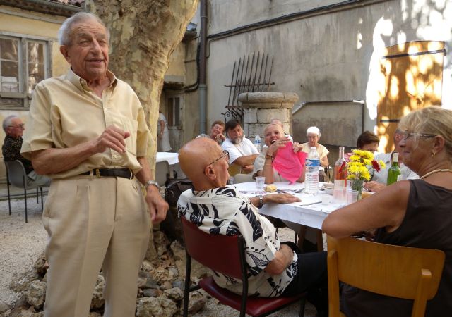 L'aïoli traditionnel a, comme en septembre 2010, bénéficié d'une météo favorable. Le déjeuner a été ponctué par des chansons traditionnelles, sous la la direction de Baptistin CAILLOL et par les saynettes en lengo nouastro qui n'ont pas porté l'assistance à la mélancolie....